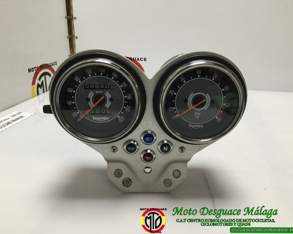 Cuadro de relojes Triumph Bonnevile T100 modelo de carburación.Todos nuestros recambios están revisados y comprobados por nuestros profesionales,pasando por diferentes controles de calidad,listo para su venta.