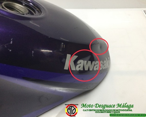 Deposito Kawasaki ZZR 250,tiene algunos bollos que se puede apreciar en fotos.Todos nuestros recambios están revisados y comprobados por nuestros profesionales,pasando por diferentes controles de calidad,listo para su venta.
