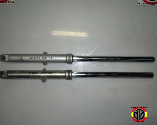 Juego de Horquilla de Yamaha SPECIAL 250 del año 1989,se compone de Horquilla Izquierda completa y Horquilla Derecha completa.Todos nuestros recambios están revisados y comprobados por nuestros profesionales,pasando por diferentes controles de calidad,listo para su venta.