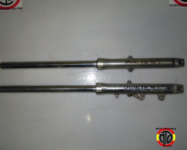 Juego de Horquilla de Yamaha SPECIAL 250 del año 1995,se compone de Horquilla Izquierda completa y Horquilla Derecha completa.Todos nuestros recambios están revisados y comprobados por nuestros profesionales,pasando por diferentes controles de calidad,listo para su venta.